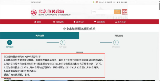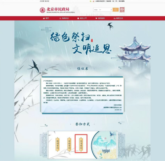 1.登录“北京市民政局”网站进入“2025年寒衣节祭扫专题”页面。
