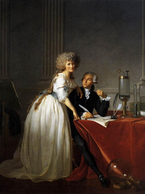 油画《拉瓦锡夫妇肖像》由大卫(1748—1825 )创作于1788年,画作描绘出拉瓦锡夫妇的甜蜜爱情和美满生活。《化学基础论》(附《反燃素论》)插图