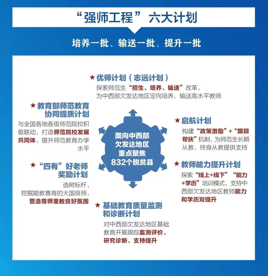 “强师工程”,具体包括“优师计划”“启航计划”“教师能力提升计划”“基础教育质量监测和诊断计划”“‘四有’好老师奖励计划”“师范教育协同提质计划”六大计划。学校党委高度重视,将“强师工程”写入学校“十四五”规划和第十四次党代会报告。“十四五”期间,北师大不断完善体制机制,汇聚发展合力,全面推进“强师工程”落实落细,助推中西部欠发达地区基础教育高质量发展,为中国特色社会主义教育强国建设贡献北师大方案。