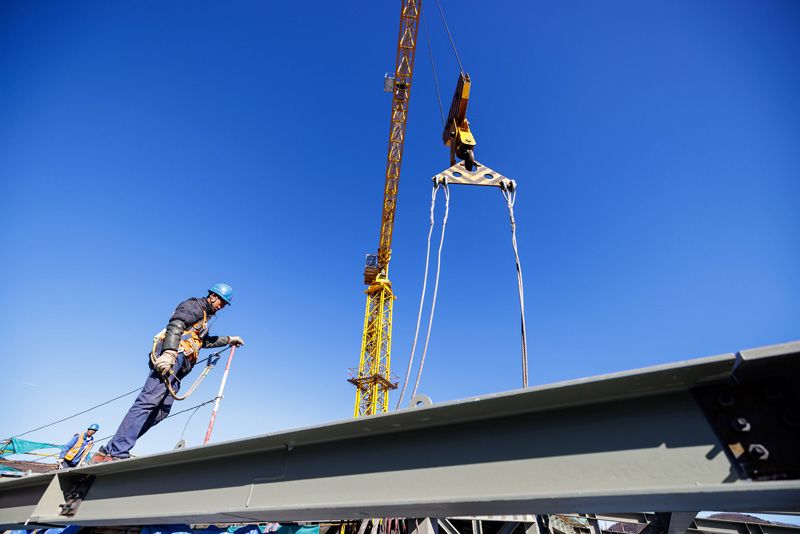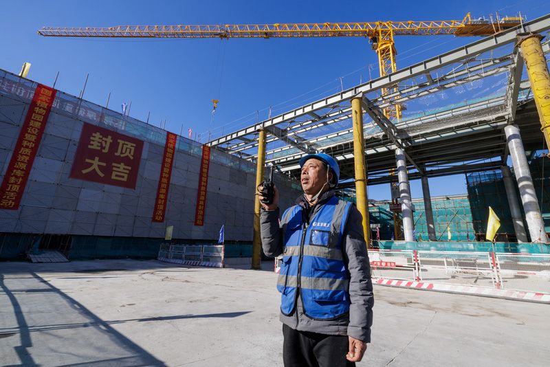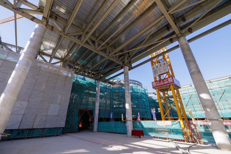 工人在顶层作业。项目内设有多功能展厅与报告厅,未来既可用于接待国内外参观考察,又可作为科普教育基地。