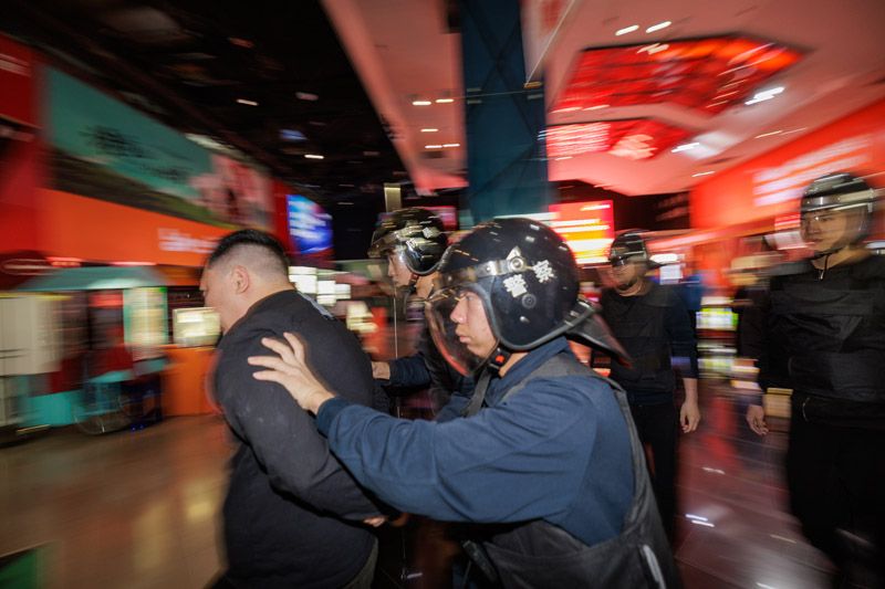 初步控制住局面后,大悦城安保力量迅速抵达现场支援,将“歹徒”带走。