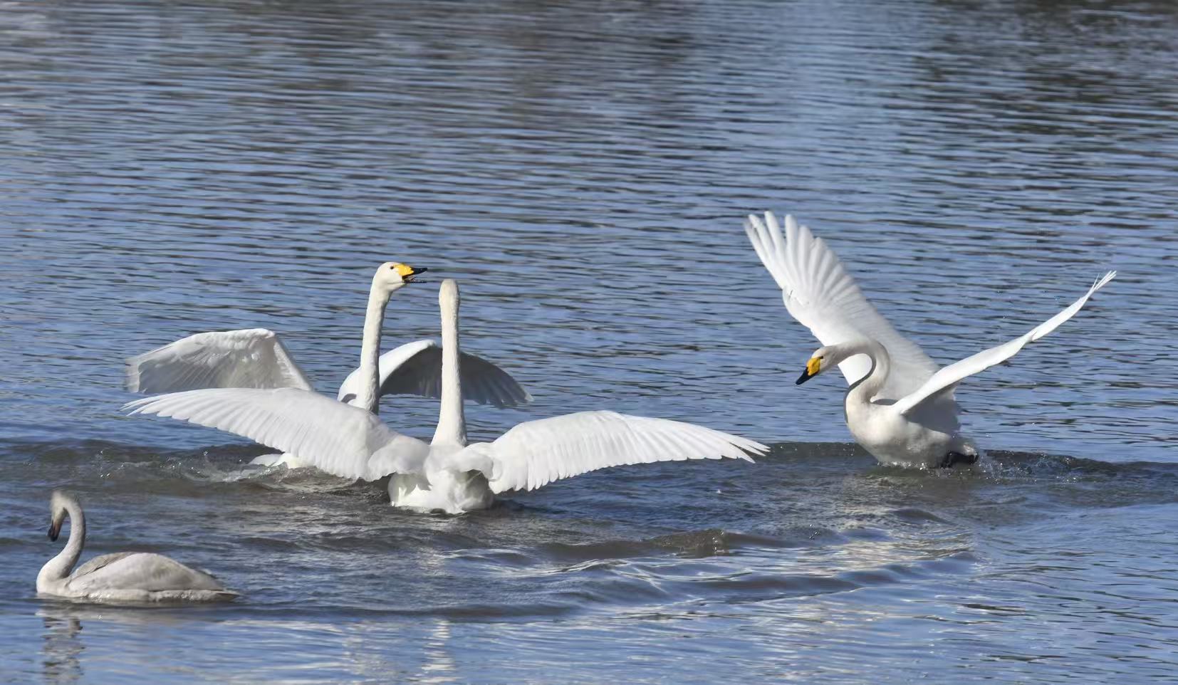 新京报讯(记者吴婷婷 通讯员 王群)当前,密云水库流域迁徙候鸟数量持续攀升,已达上千只。清水河区域再现大天鹅游弋倩影,小漕村周边灰鹤、短嘴豆雁、赤麻鸭集群觅食,迁徙候鸟正陆续抵达这片重要补给地。据介绍,密云水库作为重要的迁徙中转站,整个迁徙季将迎来上万只候鸟歇息补给。