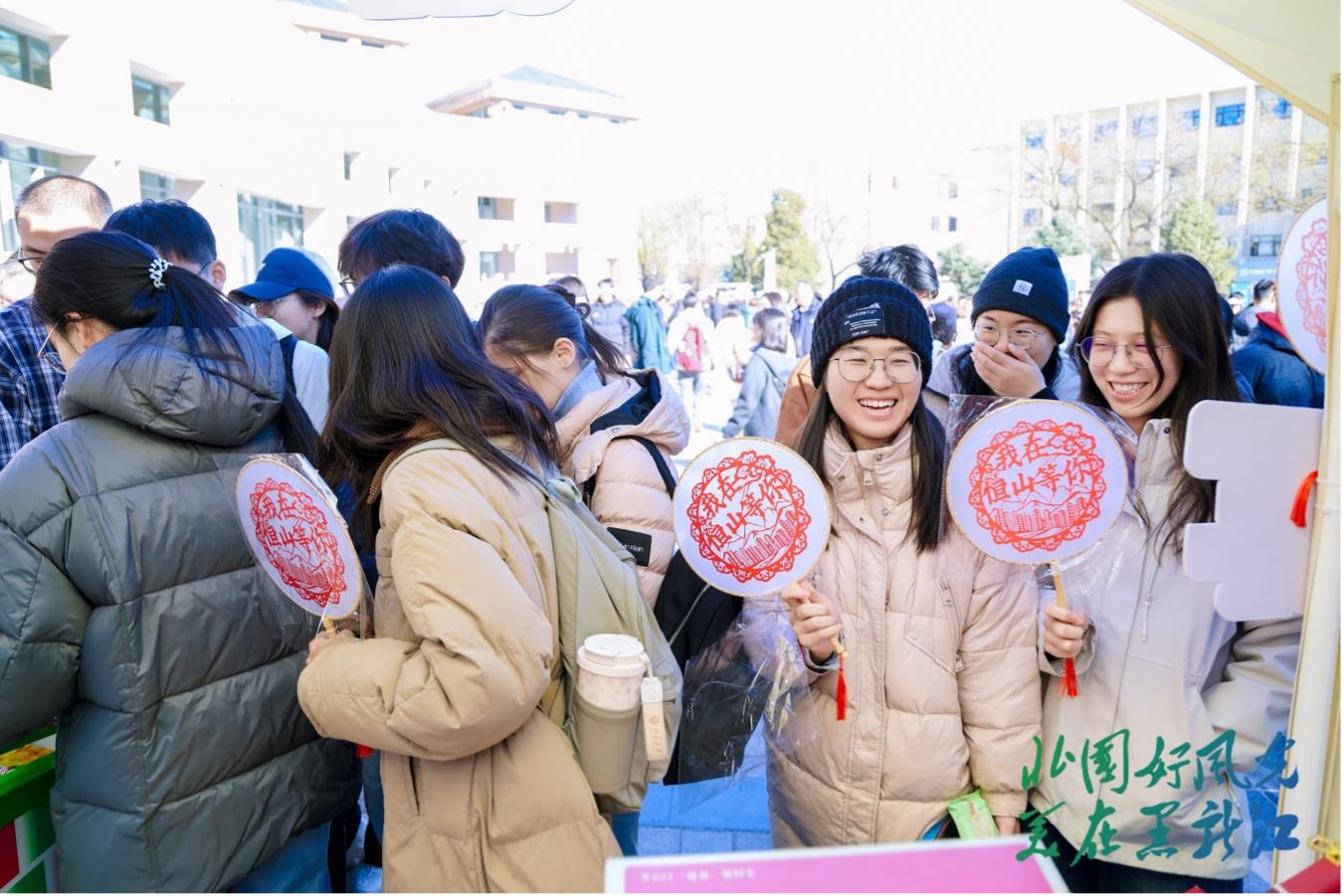 文旅市集汇聚了黑龙江文旅精华,三十余个特色展位各具风采,纷纷亮出“家底”。哈尔滨、哈工大文创中心、齐齐哈尔、大庆、伊春、绥化、大兴安岭地区的展位格外引人注目。哈工大展位的航天模型、智能温控羽绒服等高科技产品,展现着龙江的硬核实力与创新活力;各地展位推出的极具特色的精美冰箱贴、明信片、书签、帆布包等文创产品,则将冰雪文化与城市印记巧妙浓缩,令师生们爱不释手,细细品味着每一件产品背后的龙江故事。