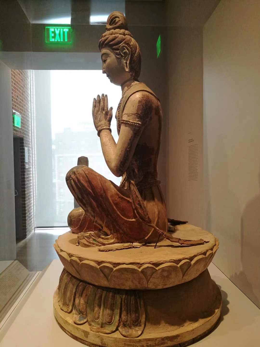 宁强曾在哈佛大学艺术博物馆中的这尊彩色菩萨像下上课。受访者供图
