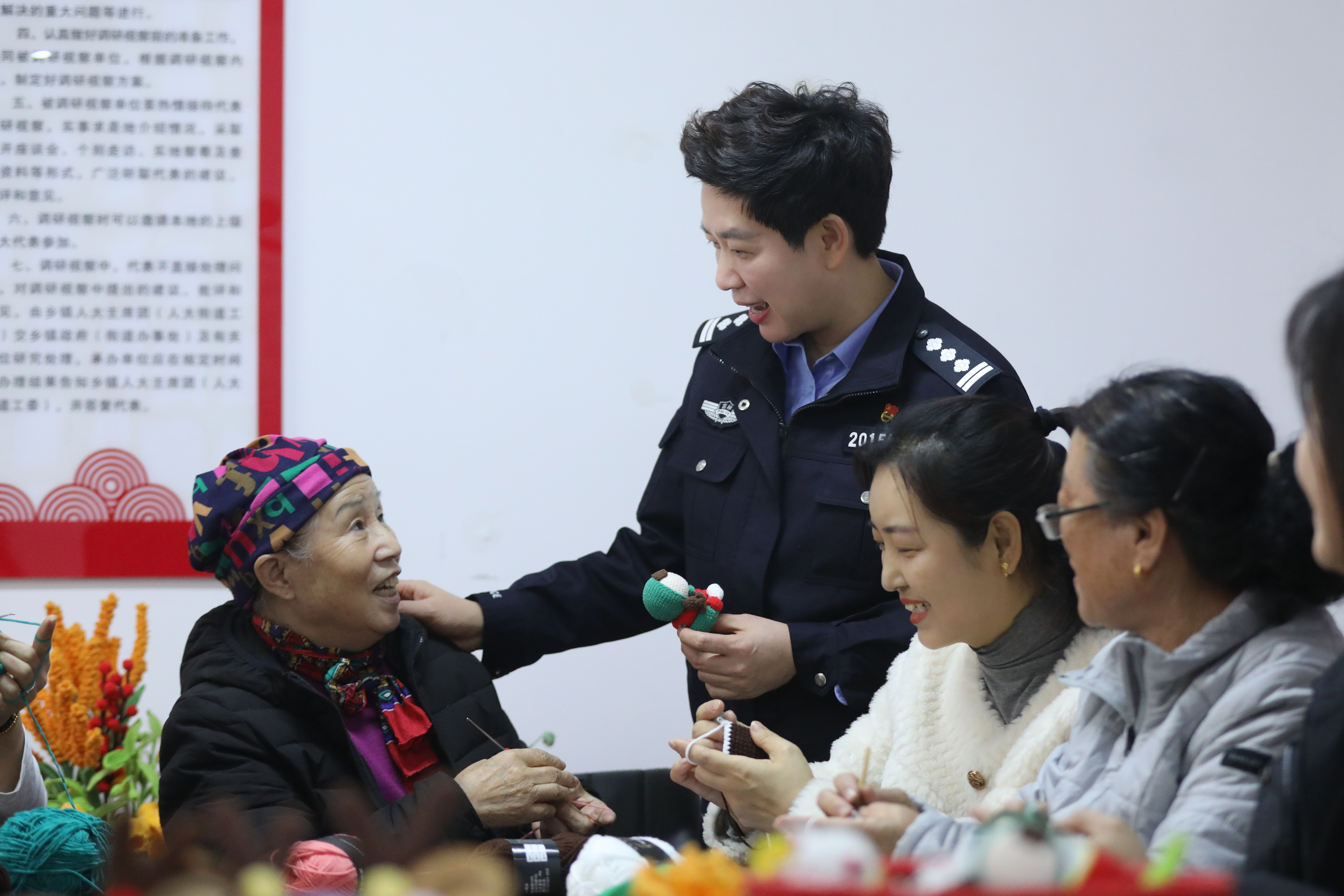 为了给“妈妈们”找个“营生”,她自掏腰包买来七彩毛线,在警务室设置了“编织角”,并举办钩织比赛,激发大家的参与热情。随后,张野找来老师传授手艺,兴趣小组参与人员越来越多,如今已有200多名成员,也有了自己的“织心妈妈”手工坊。