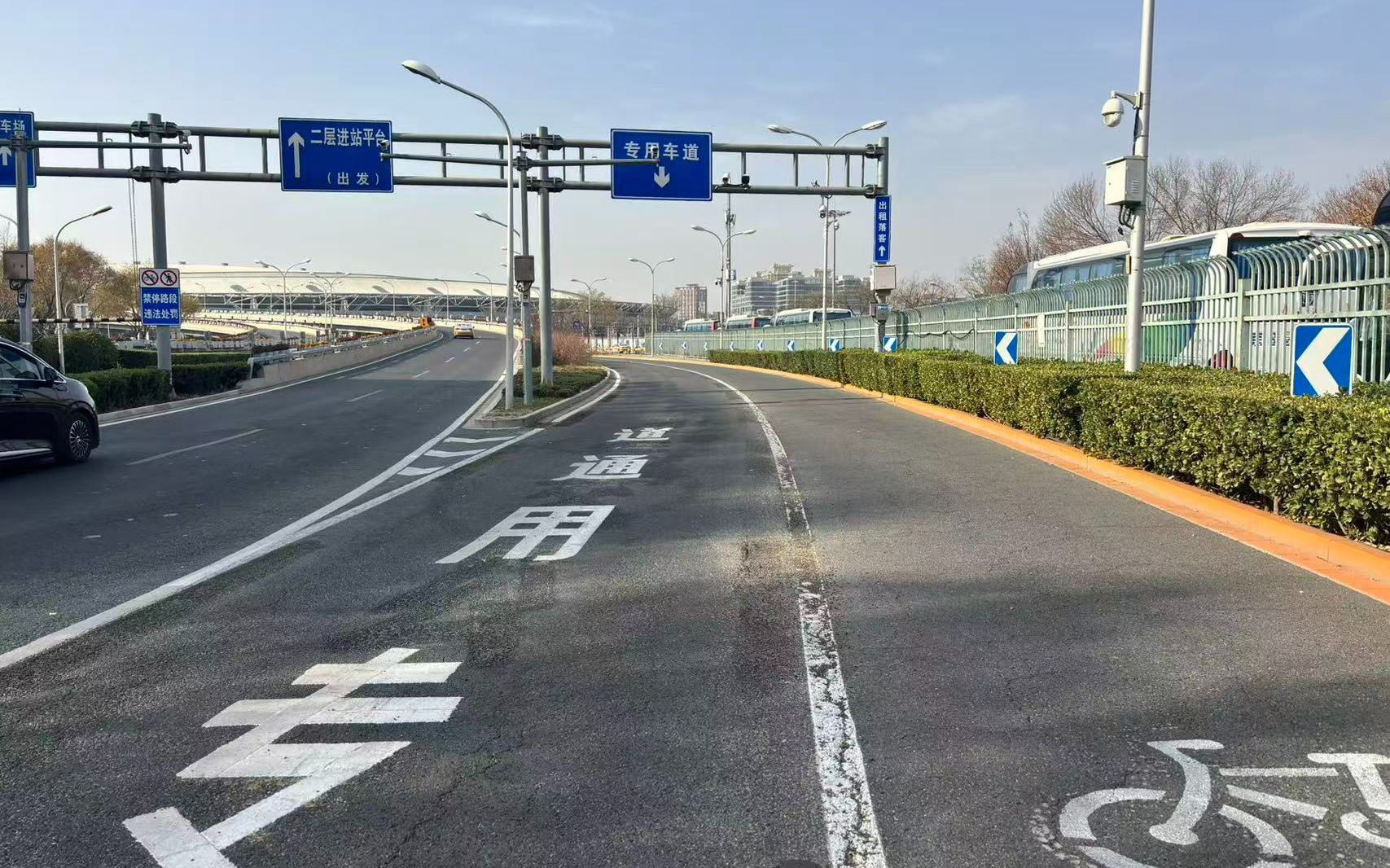 出租车、公交车、大巴车进入南广场落客的专用车道。新京报记者 王贵彬 摄