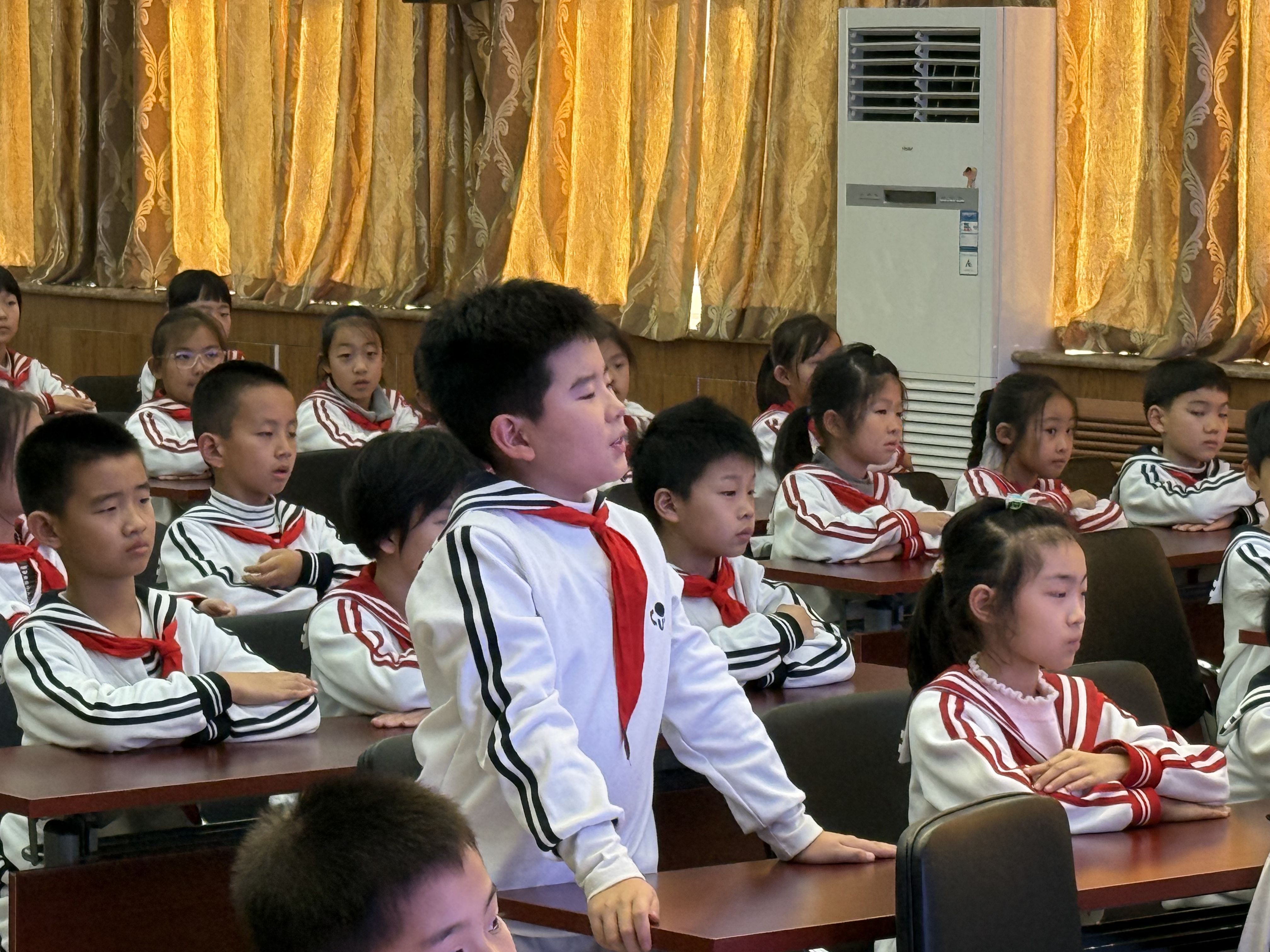 崇文小学学生踊跃回答齐莎的提问。 马然 摄