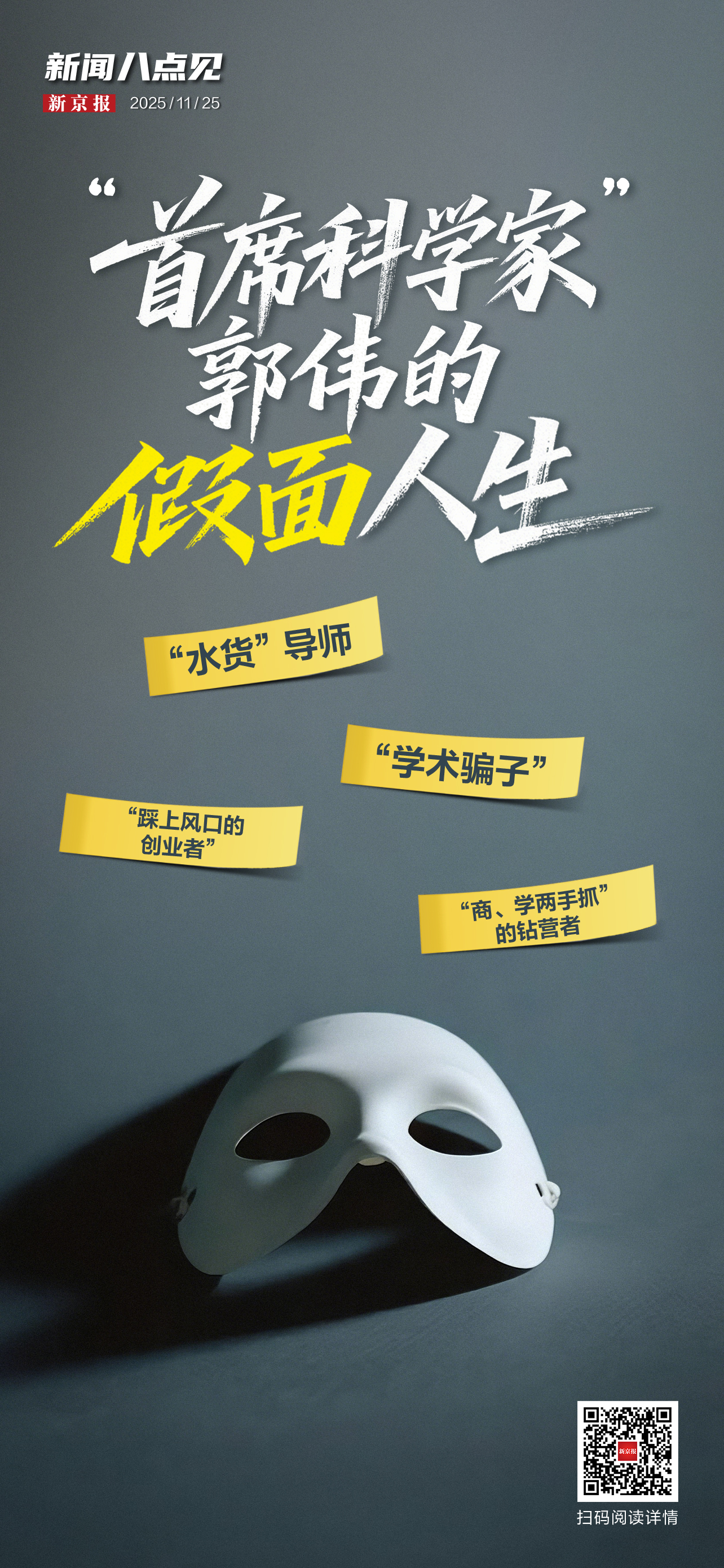 此前,贴在郭伟身上最大的标签或许是“首席科学家”,但近日来,这一标签已经被“学术骗子”彻底替代。