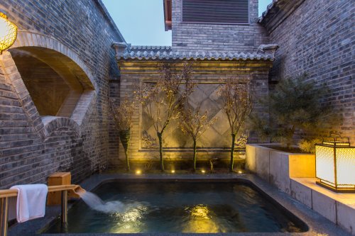 御舍汤泉(御舍精品酒店)以汉唐古典风格为核心特色,将汤泉体验与长城夜景深度融合,游客在泡汤中可观赏司马台长城的夜间景致。御道汤院(段家大院)依托山势构建露天汤池,为游客打造了在庭院中远眺长城的开阔视野;十三妹女子度假酒店则以“私汤入户”为核心优势,实现每间客房配备独立汤池,着重保障游客的私密体验;针对家庭客群,御大汤池(御大水世界)专门设置成人养生区域与儿童娱乐区域,构建适合亲子共游的休闲空间。古北水镇的汤泉各具亮点,为游客提供了多元化的暖冬休憩选择。