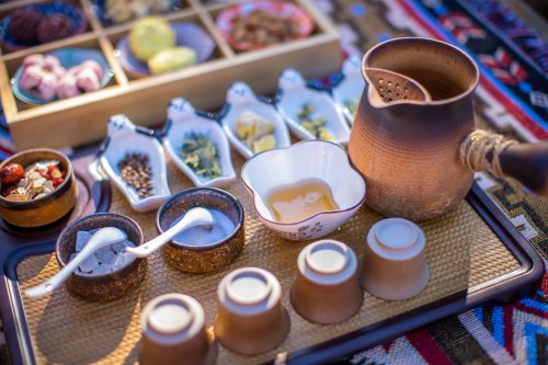 此外,景区还推出“围炉煮茶”餐饮套餐,并将茶席设置于御道汤院(段家大院)庭院区域,通过还原中式茶饮场景,将茶艺展示与游客互动体验相结合,进一步丰富景区餐饮业态,为游客提供兼具传统韵味与参与感的沉浸式消费体验。