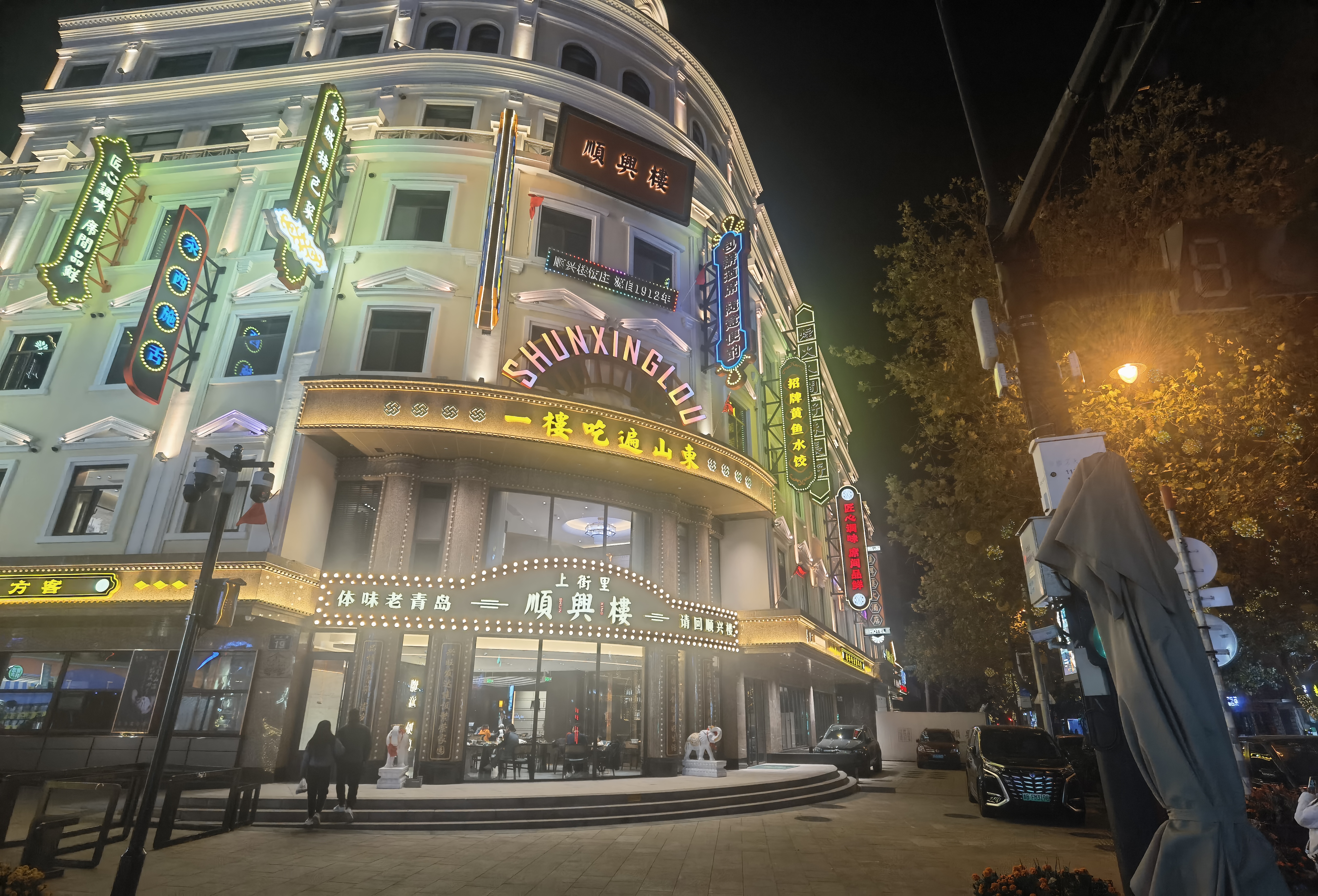 11月20日晚,青岛中山路上,时隔七十年后再次开张的顺兴楼灯火通明。新京报记者 周怀宗 摄