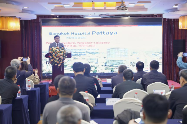 BDMS集团芭提雅曼谷医院泌尿外科专家在本次会议上的演讲,是大会的核心亮点之一。演讲深度聚焦“阴茎弯曲治疗”,系统性地分享该领域先进的手术矫正技术、精细化的围手术期管理策略以及科学高效的术后康复方案。