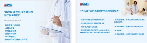 曼谷杜斯特医疗服务集团(BDMS)是泰国最大的私立医疗运营商之一,拥有超过50家医院,涵盖从初级到超级三期医疗服务的广泛范围。BDMS以提供高质量医疗服务而闻名,并通过其14个卓越中心专注于 IVF、骨科手术、髋关节和膝关节置换、高级儿科护理、骨髓移植、小儿心脏手术等领域。13,000多名专业医生和10,000多名护士组成的专业医疗团队每天接待约33,000名门诊病人和4,500名住院病人。为了提高医疗服务效果和病人体验,BDMS致力于以病人为中心的医疗计划。值得一提的是,BDMS与许多国际知名医疗机构建立了战略合作伙伴关系,例如梅奥诊所和Cedars-Sinai医疗中心,开展教育、研究和创新项目。BDMS秉承“以您为本,价值至上,品质优先”,这一点体现了公司对高质量医疗服务的承诺以及对每位病人的重视。BDMS致力于为前来泰国的中国游客提供卓越的医疗服务,确保游客在旅途中享受到高标准的医疗护理。