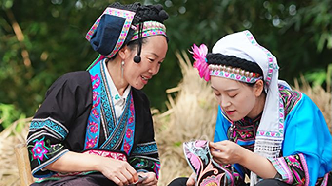 米连科技认识到,非遗传承的关键在于“人”,尤其是年轻一代的认知与喜爱。平台充分发挥其用户覆盖广、互动形式强的优势,将非遗元素创造性融入线上活动。例如,在"将爱绣出来"主题活动中,平台以布依族非遗传承人为核心,通过精心设计的系列海报,从地域文化、绣法图案、传承精神等多个维度,全面展现了布依族刺绣深厚的文化底蕴。除了线上传播,平台还拍摄了精美的宣传视频,带领用户走进云贵大山的自然美景,见证布依族姑娘们以针线传情,用绣纹表达心意,生动诠释了布依族独特的情感表达方式。