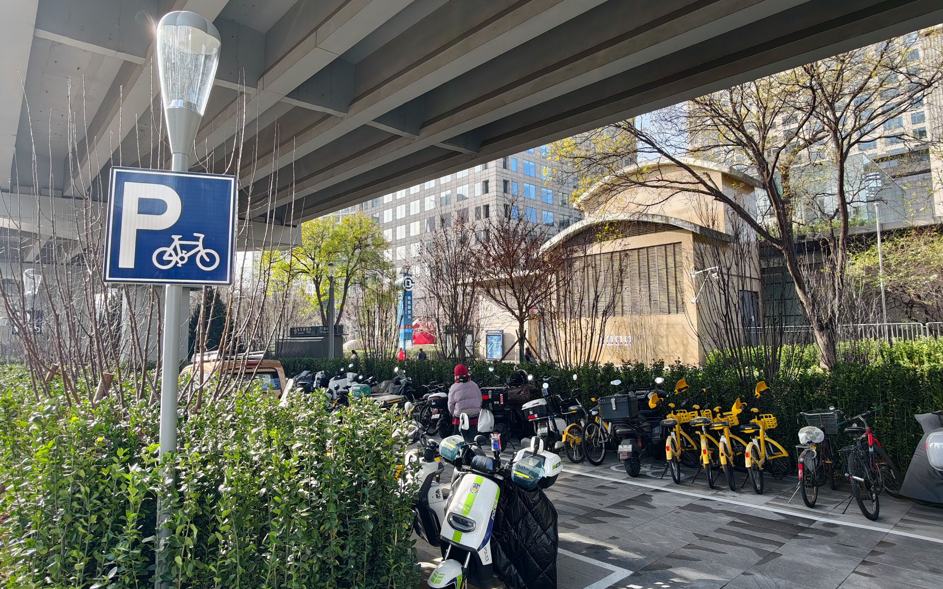 此外,优化调整8处公交站点,缩短公交与地铁换乘接驳距离,将公交站、地铁口集散面积从1099平方米扩至3083平方米,提升换乘便捷度;同时,充分考虑桥下地铁风亭和桥墩限制条件,结合周边人群接驳、休闲、活动需求,在三环桥下打造长约1.1公里、宽8米的多功能“漫行廊道”;拓展非机动车停车面积约4000平方米,增设约1400个停车位,有效缓解区域停车难问题。