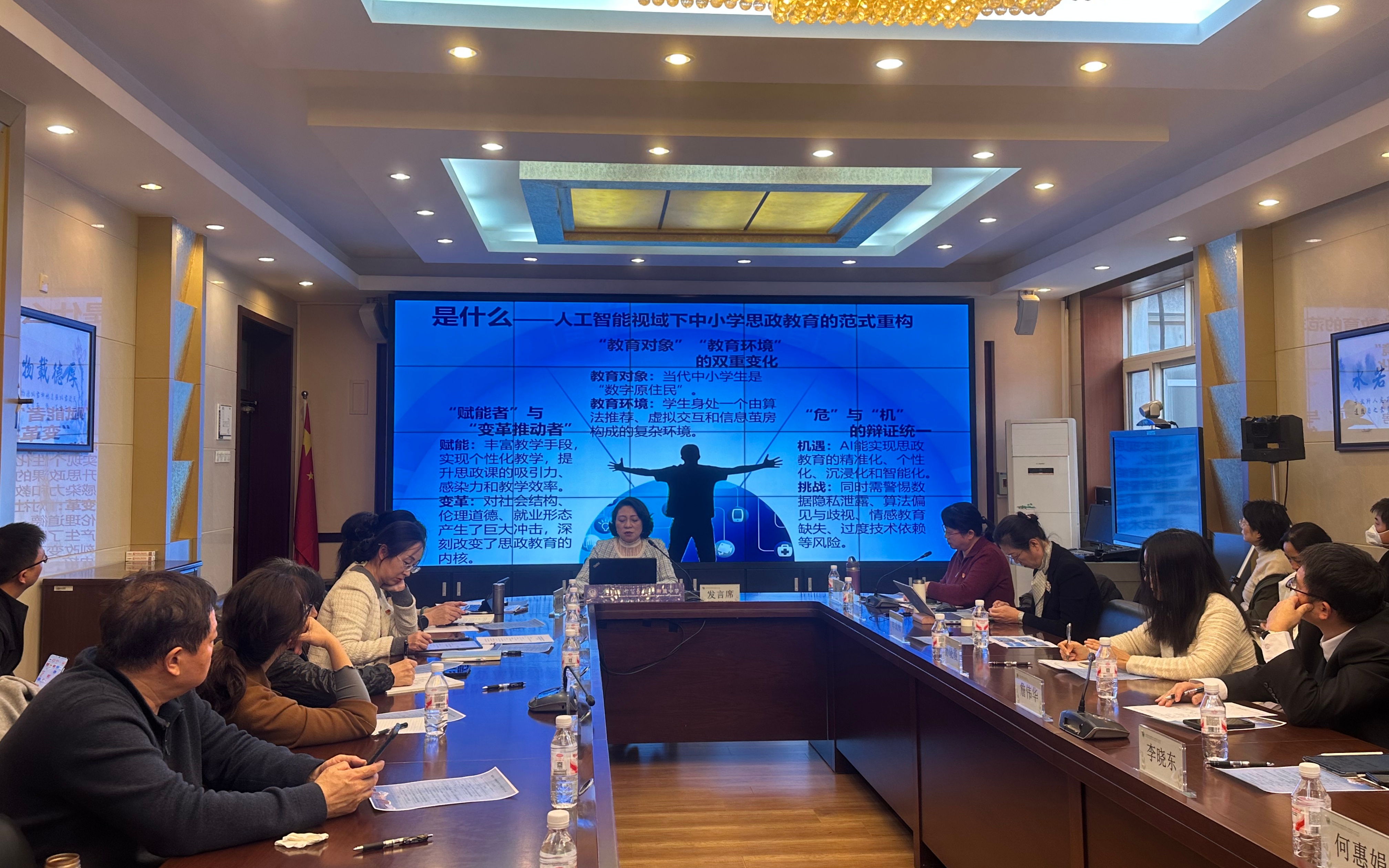 此次研讨会由京津冀教研共同体、北京教育科学研究院基础教育教学研究中心、天津市教育科学研究院课程教学研究中心、河北省教育科学研究院课程管理部联合主办,北京市朝阳区教育科学研究院承办,对外经济贸易大学附属中学协办。现场聚焦人工智能时代思政教育如何有效融入各学科教学进行研讨,来自京津冀地区的教育研究者、一线教师代表共同参与。