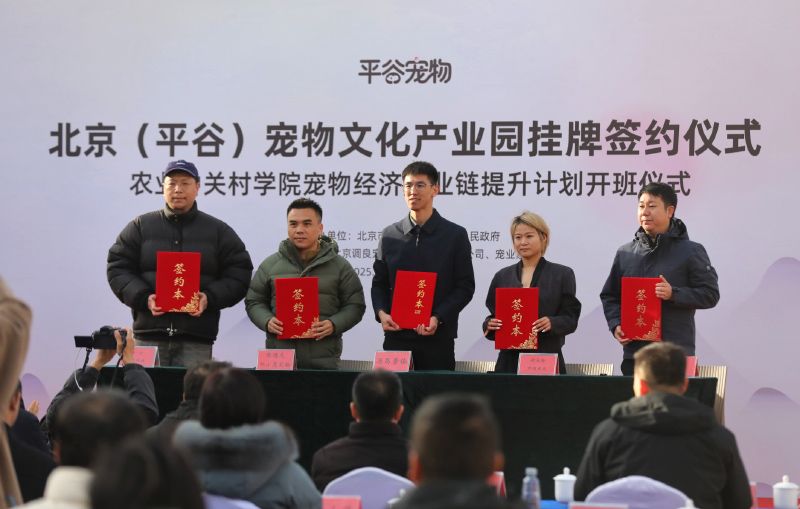 揭牌仪式上,全国多家宠物品牌代理商与马昌营镇政府签订入驻园区协议。
