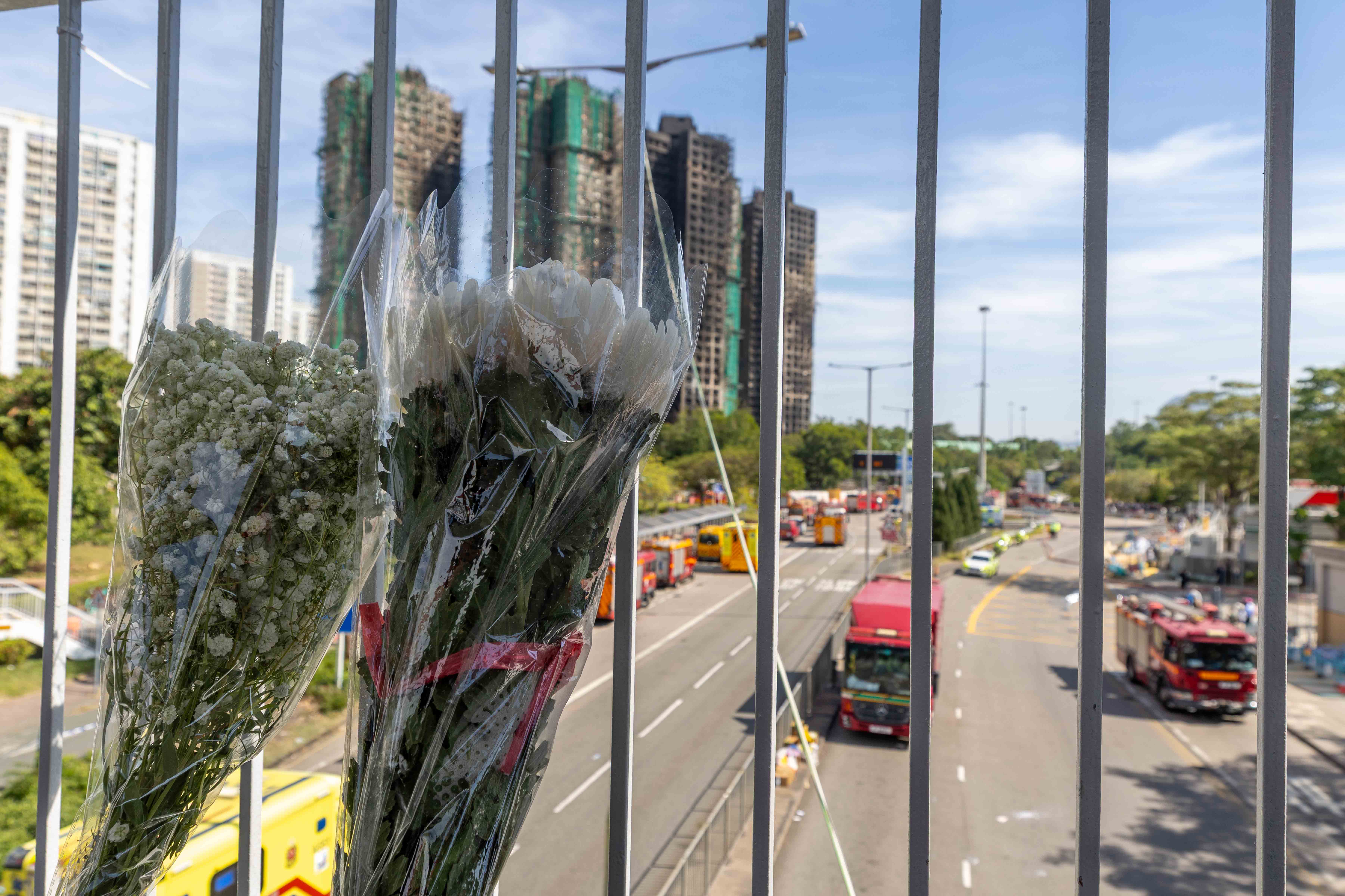 2025年11月28日,香港市民携花束现场致哀。图源IC