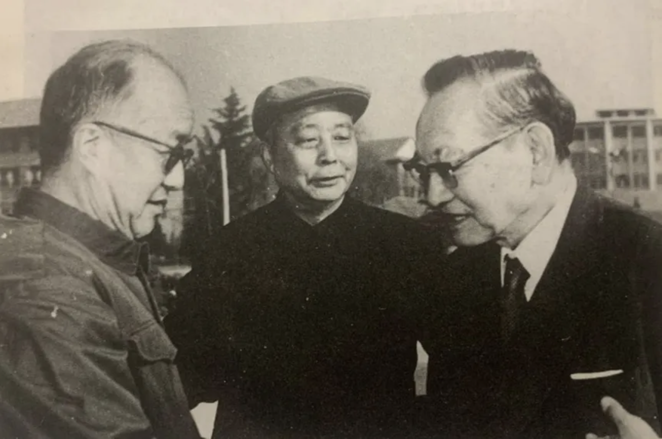 郭琦校长(中)与刘持生教授、金启华教授在西北大学校园。图源:西北大学官网。