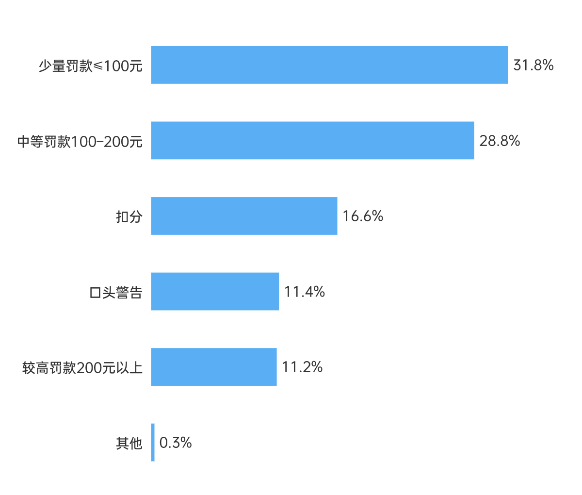 31.8%的受访者认可对不使用儿童安全座椅给予100元以下的少量罚款。图片来自中国人民大学公共传播研究中心《公众对儿童安全座椅的认知、使用差距与立法支持度调研报告》