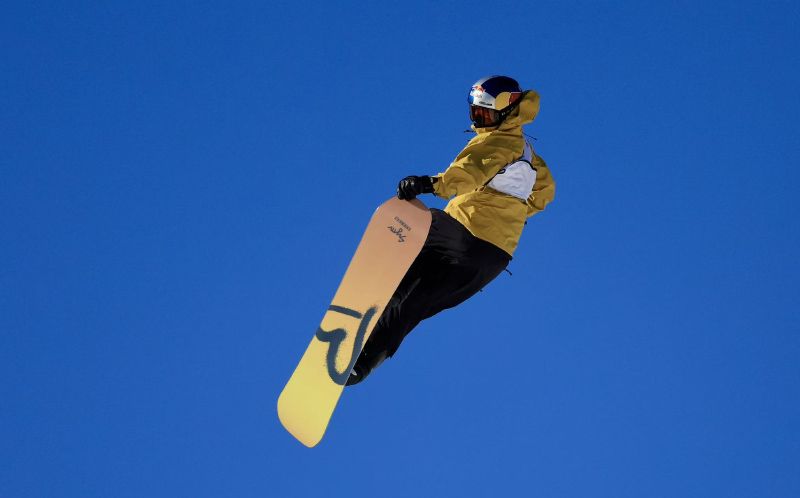 苏翊鸣腾空后完成精准抓板动作。