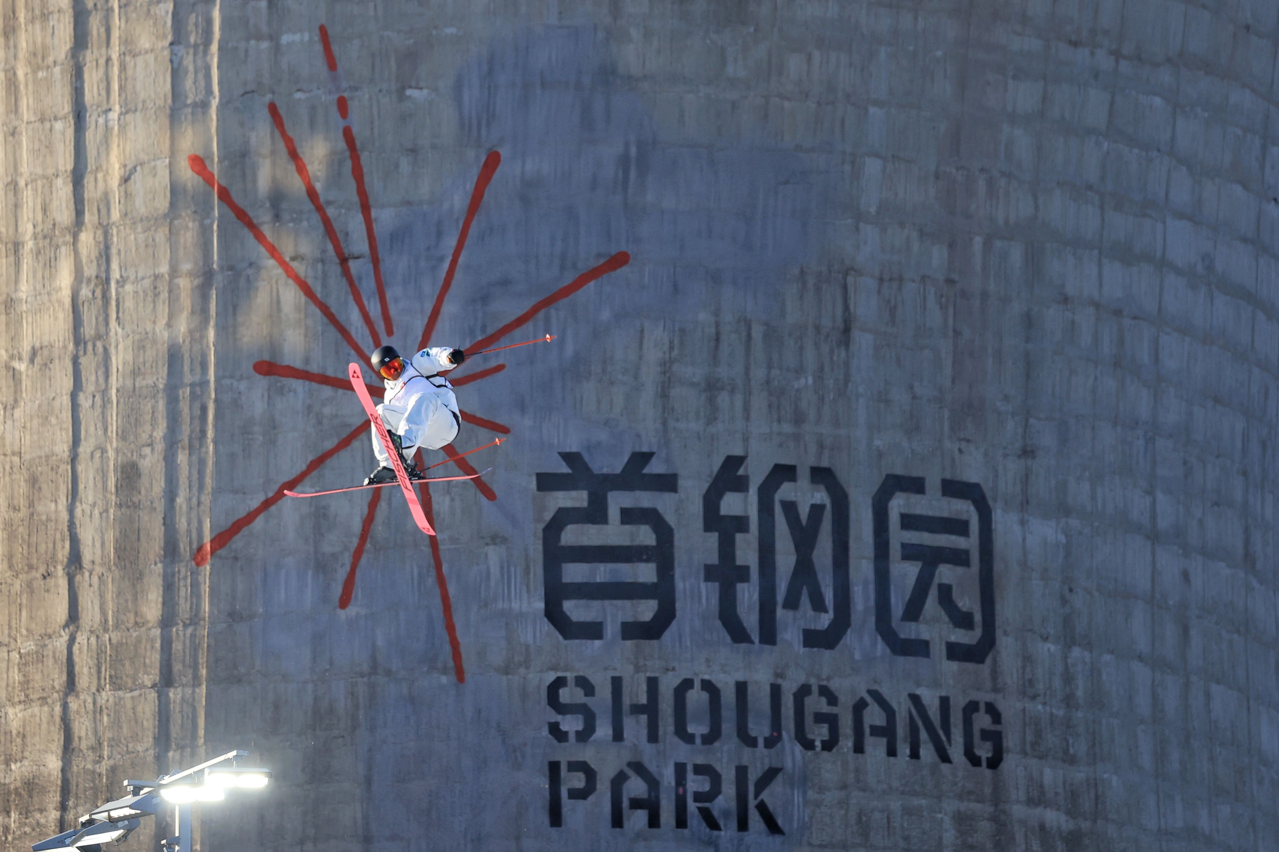 12月2日,首钢滑雪大跳台“雪飞天”,运动员训练。12月4日至6日,2025-2026赛季国际雪联单板及自由式滑雪大跳台世界杯(北京站)将在首钢滑雪大跳台举行。