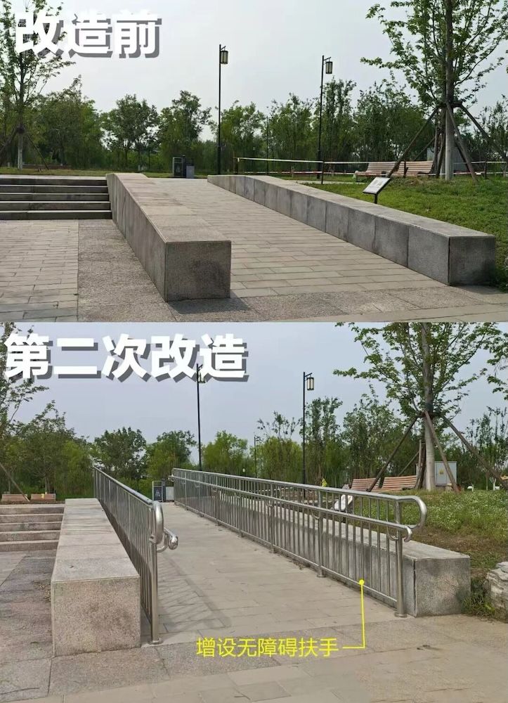 今年9月,张屹受海淀区园林局邀请,与区残联工作人员一起前往一亩园公园考察无障碍环境改造成果,发现公园整改以后,增设了无障碍地图、无障碍扶手以及盲道,在相应位置贴上了提示条,无障碍卫生间的抓杆、多功能台等也都进行了更换。