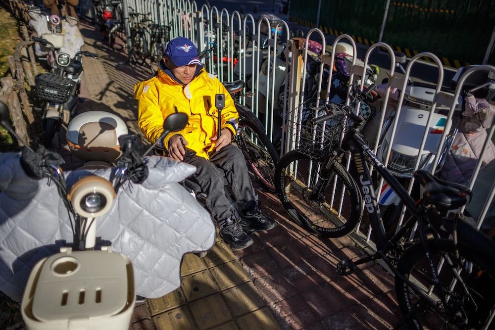 12月1日,张屹从果园地铁站门口的非机动车道“突围”。
