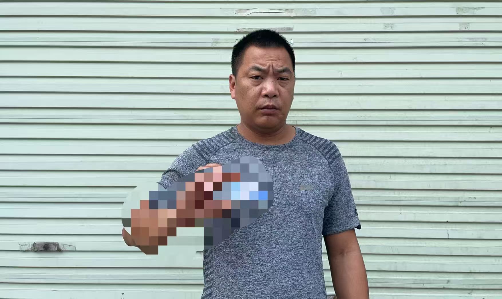 他当天身穿嫩绿色短袖T恤,外面套了一层灰色防晒衣和黑色羽绒服,下身穿深灰色长裤,头戴白色棒球帽,出门时还携带了一个白色鱼箱。
