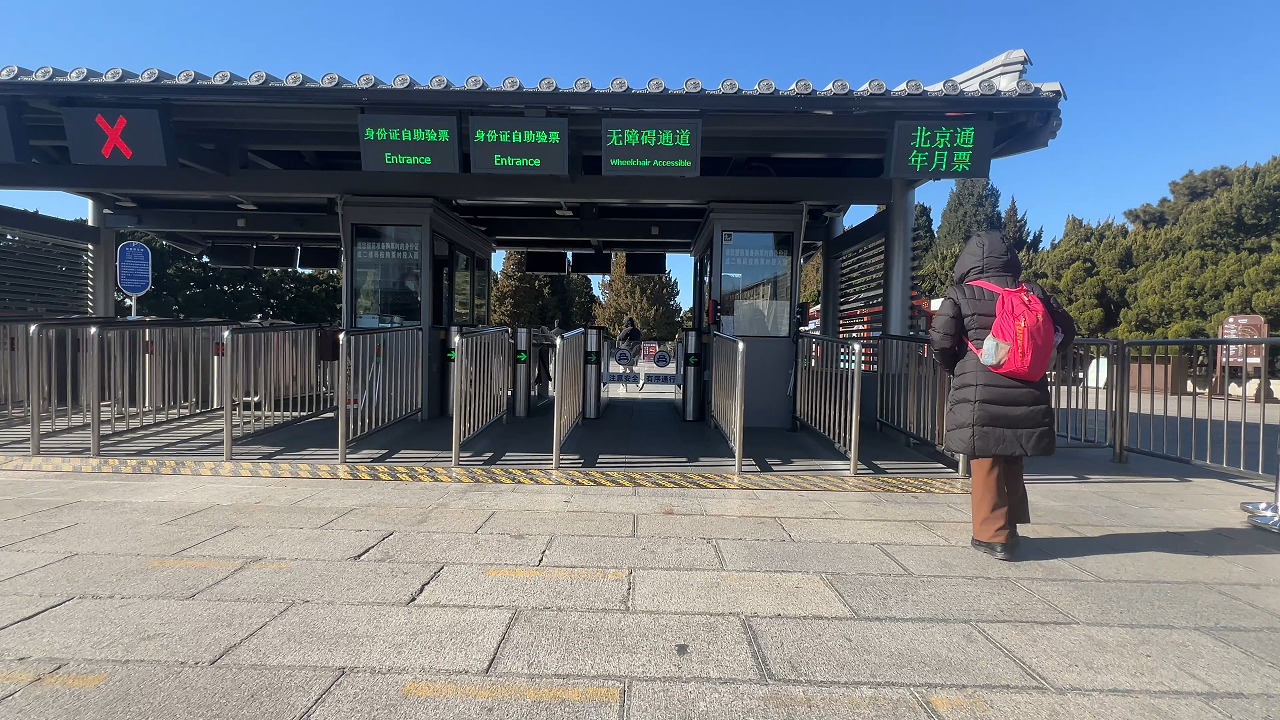 天坛公园东门,无障碍通道设置了更宽的闸口,方便轮椅直接通行。新京报记者 刘婧瑜 摄