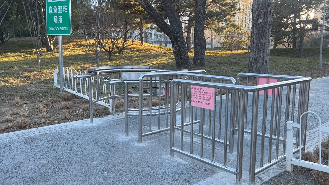 壹号公园进口处,旋转门可以让轮椅轻松通过。新京报记者 刘婧瑜 摄