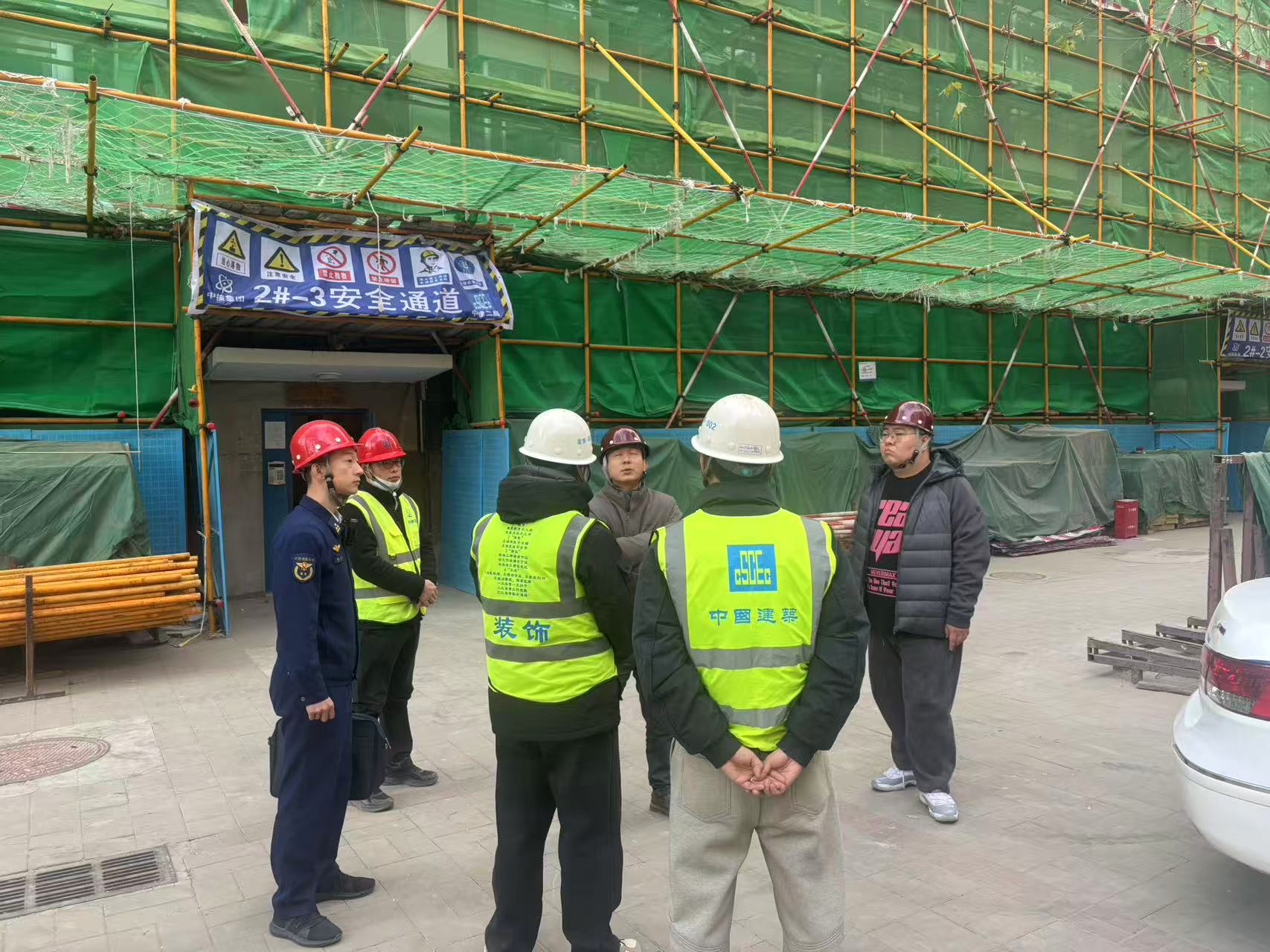 检查人员针对人员密集场所施工特点,围绕消防安全、临建房屋安全管理、人员资质等重点环节对项目进行了逐一指导,并对消防安全管理人员在岗情况、动火作业管理制度、可燃物清理情况进行询问并提出工作建议。