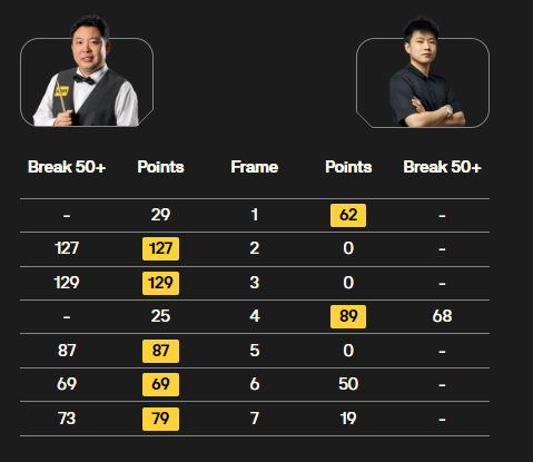 另外一场比赛中,张安达对阵赵心童,双方前四局战成2-2平,不过中场休息后,张安达连胜四局,以6-2击败赵心童晋级八强。