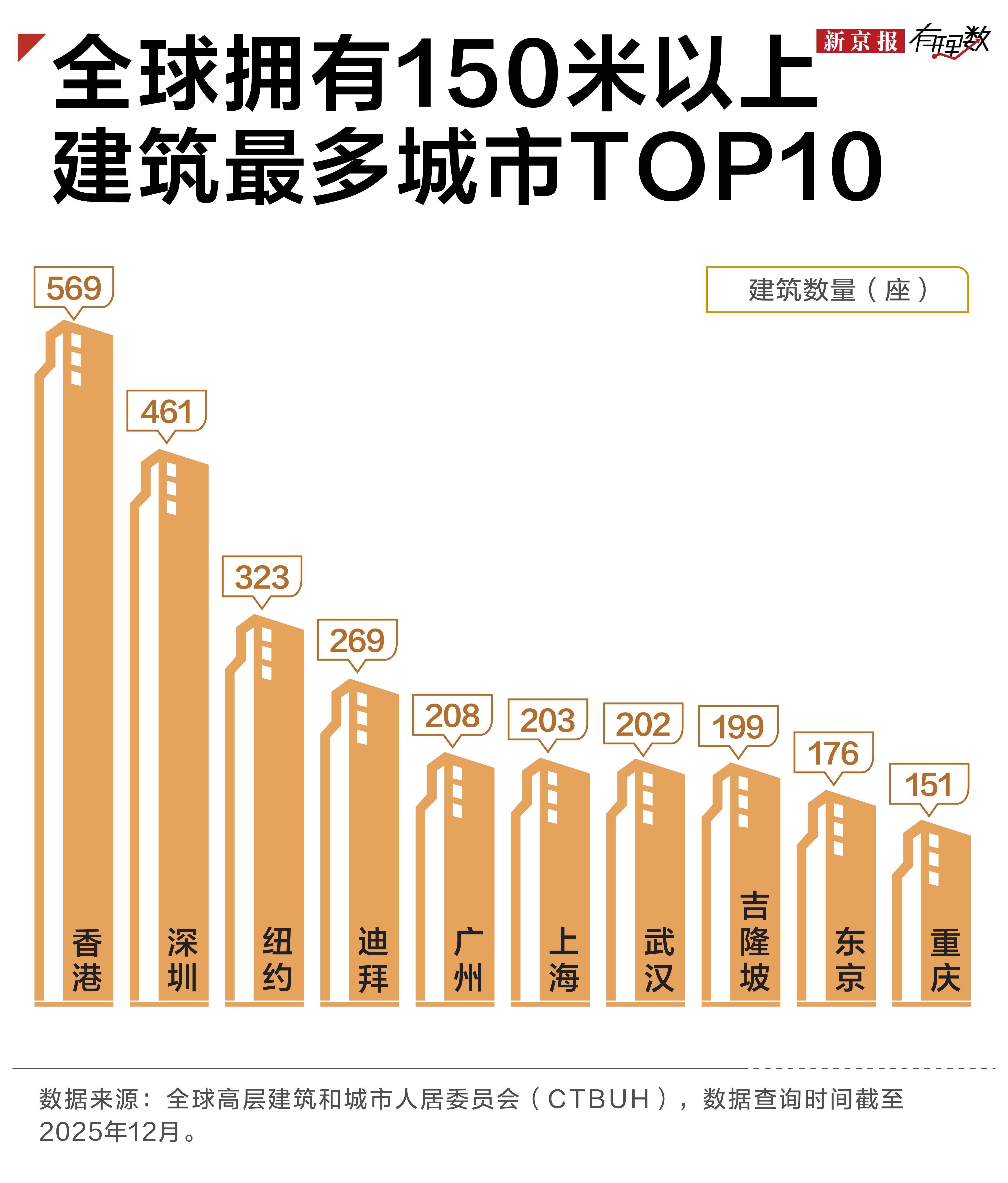 全球高层建筑和城市人居委员会(CTBUH)2025年数据显示,香港,150米以上的摩天大楼569座,霸榜全球第一,深圳、纽约等城市在其面前都得“望楼兴叹”。
