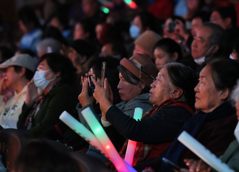 居民用手机记录节目精彩瞬间。