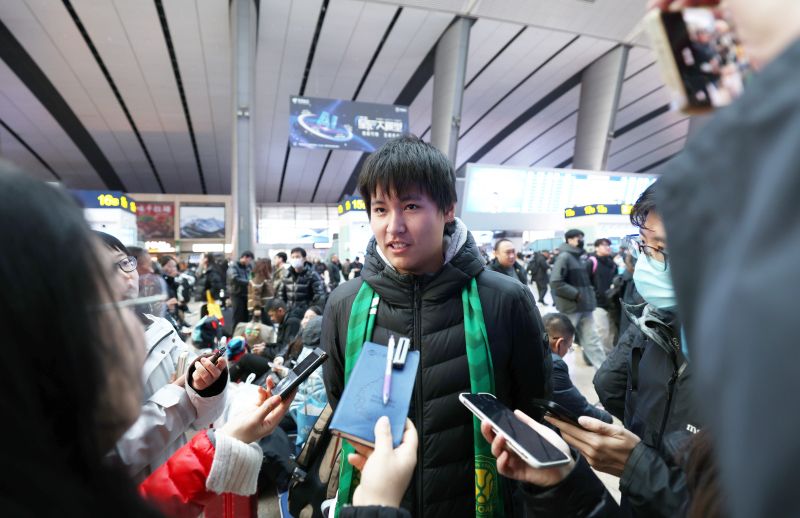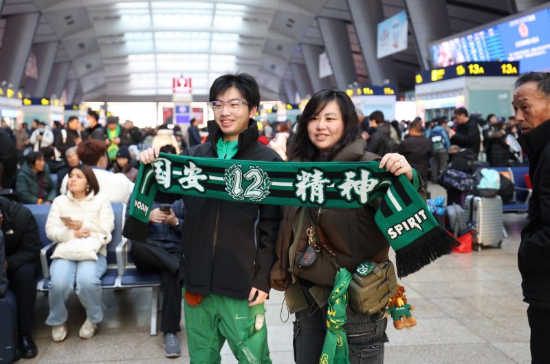 国安队球迷小王早早就来到了北京南站候车,提及此次乘车的感受,他十分期待,感觉球迷们一起出行,氛围感更好。