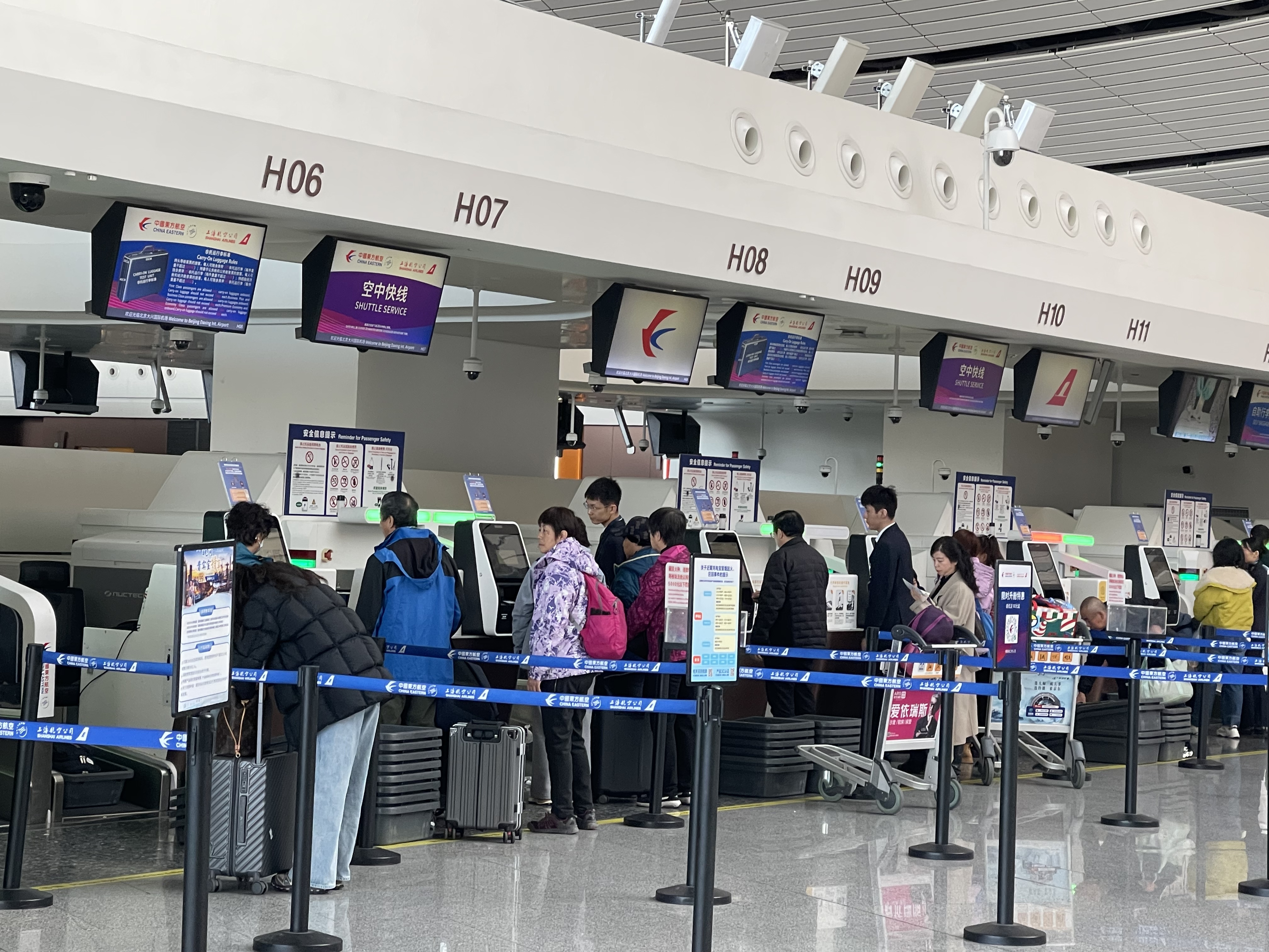 12月7日,大兴机场航站楼,旅客办理行李托运。新京报记者 陶冉 摄