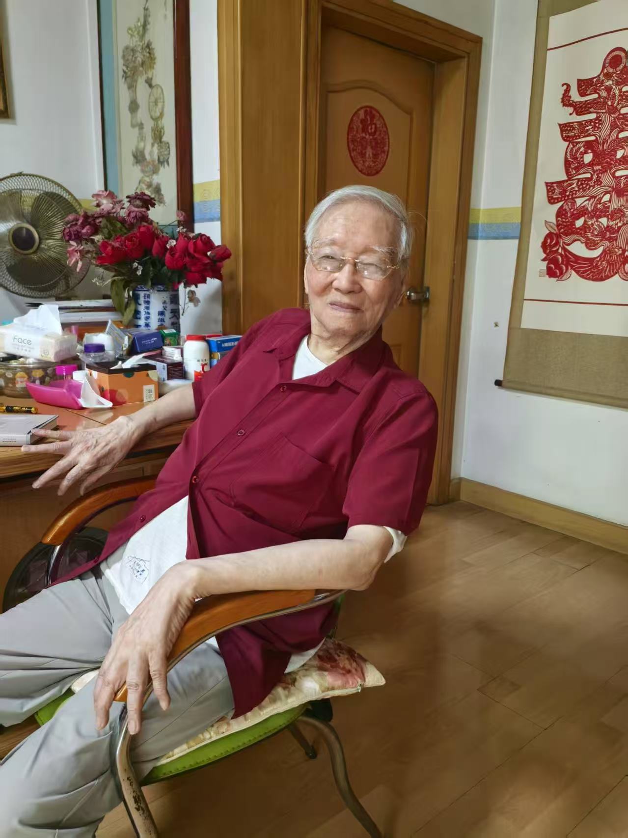晚年的王火在家中过着深居简出的生活。受访者供图