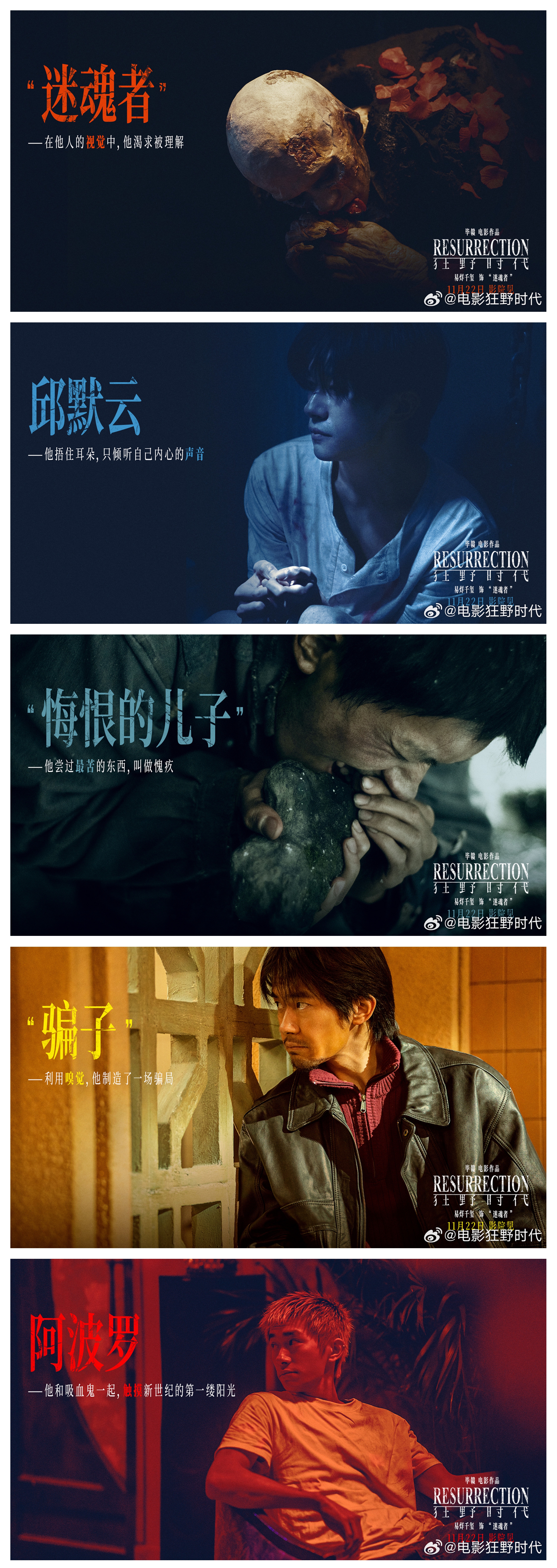 易烊千玺:当然在一部电影里分饰五个角色是很大的一个挑战,但最吸引我的,其实是故事整体的设定,用这样的形式串联起电影的一百年,还要演出同一个灵魂在不同梦境里的投射和变形,这些新奇的设定都非常吸引我。