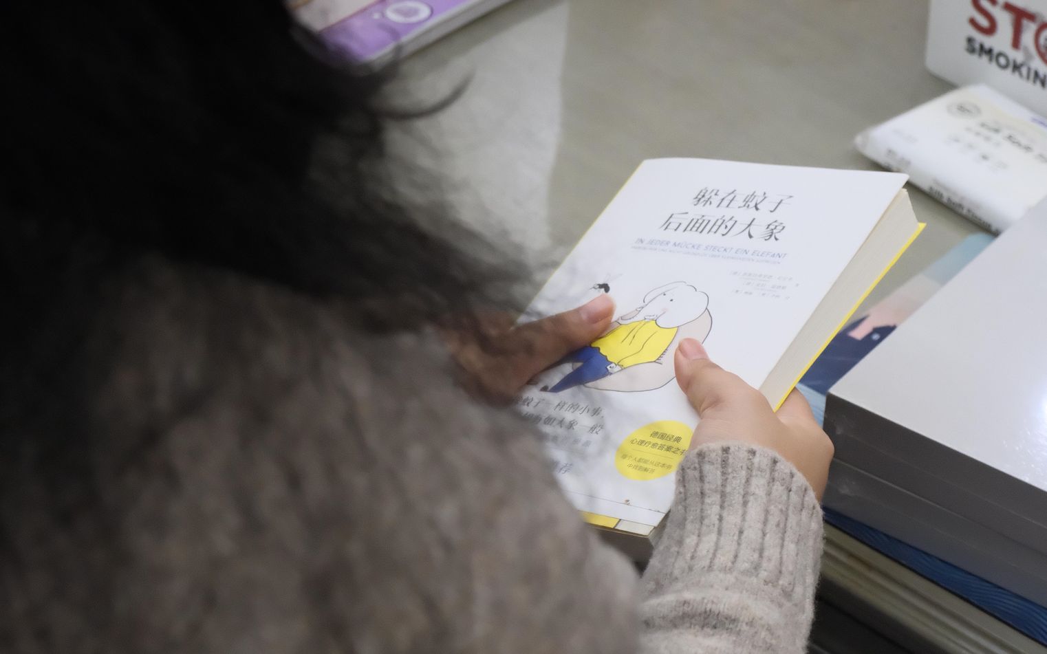 2025年12月6日,小月拿起徐凯文办公室一本与心理学有关的书。 新京报记者 郭懿萌 摄