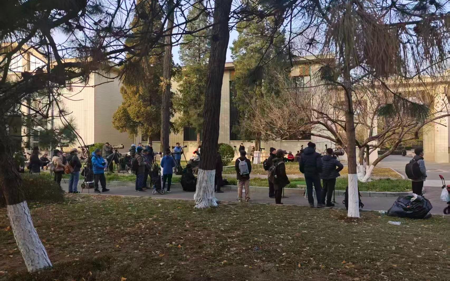11月29日,农业展览馆5号馆前聚集了很多摄影爱好者和观鸟者。受访者供图