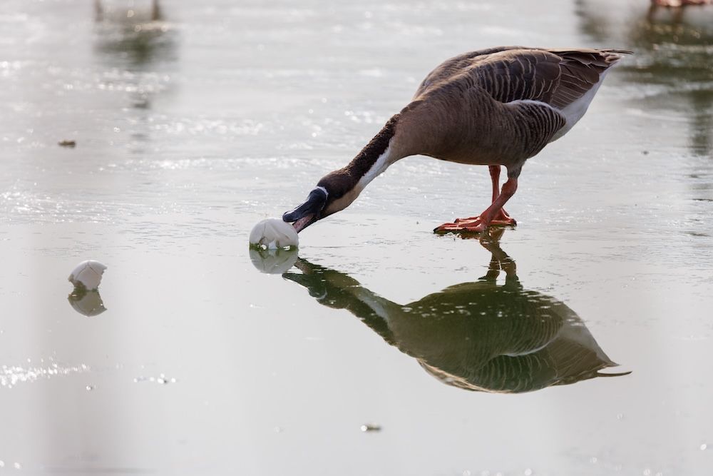 家禽并不惧怕人类,到公园赏景的市民朋友们也乐意随手带上些食物去投喂它们。然而,候鸟们会观察家禽与人类的互动,当它们确认不会受到伤害后,便会混入其中“蹭吃蹭喝”。在这个过程中,它们不仅会因不合理的投喂受到伤害,还会与家禽杂交。这种混群杂交,会导致家禽与候鸟携带的病毒相互感染,又伴随着候鸟的迁徙,被带到更多的野生鸟类身边。