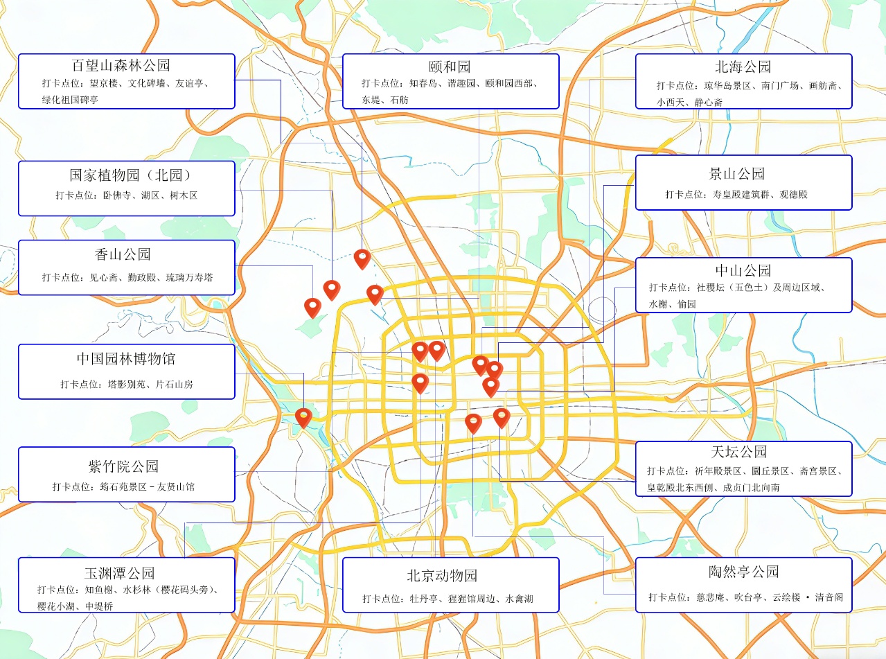 北京市公园管理中心推出“雪景打卡地图”(点击可放大查看)。北京市公园管理中心供图