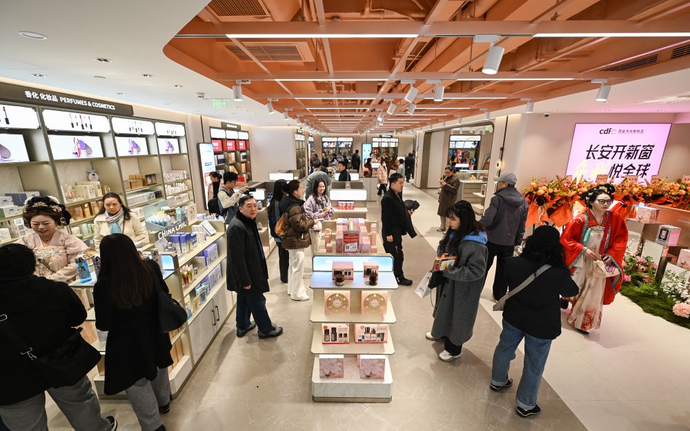 ▲11月26日,顾客在西安市内免税店有税商品区选购商品。图/新华社
