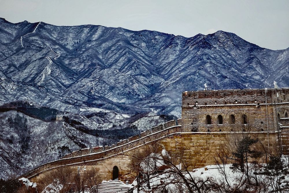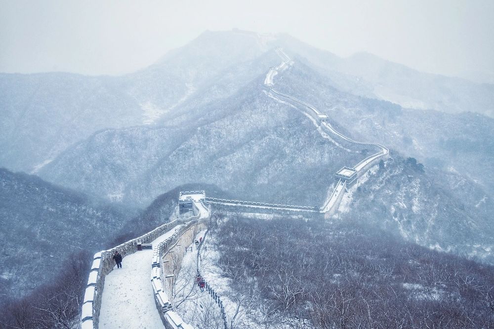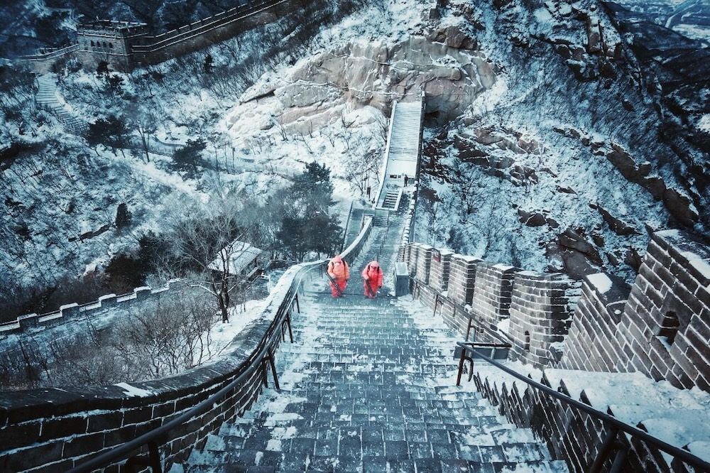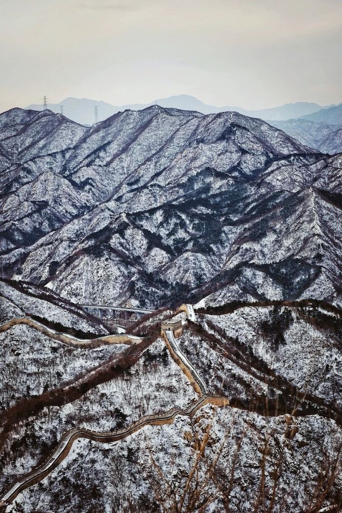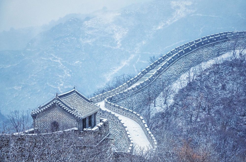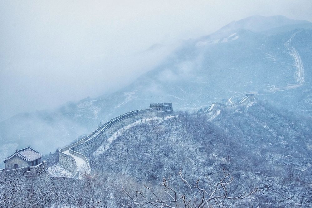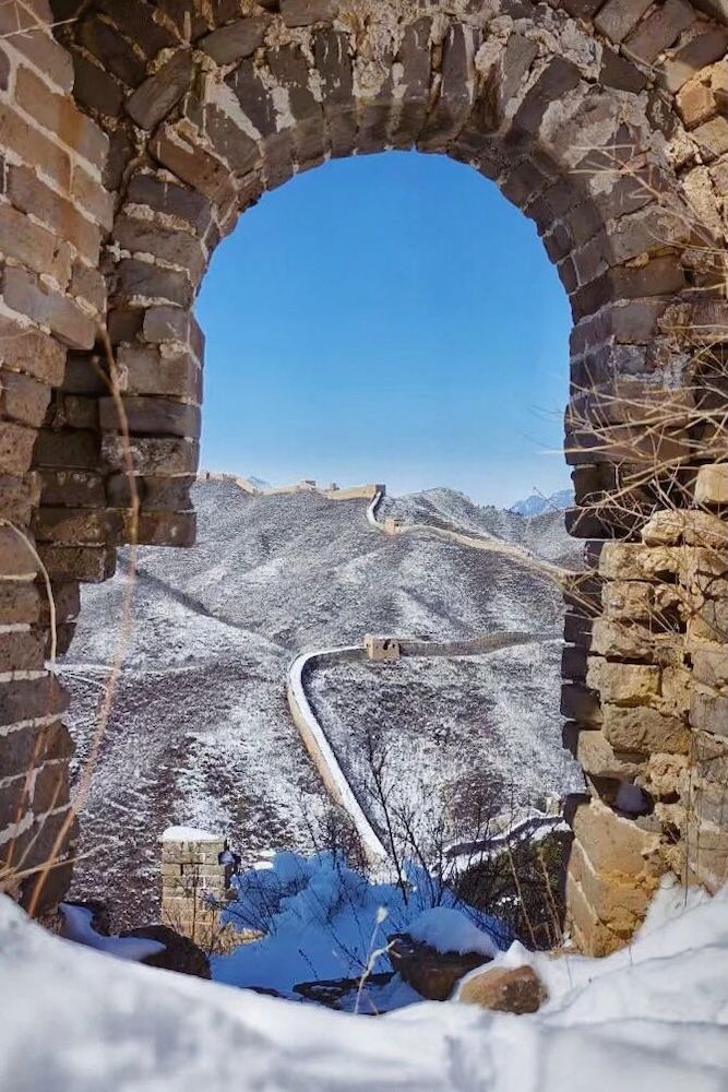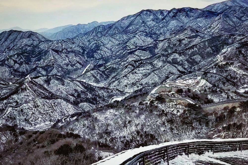 雪落无声,覆盖了烽火台的斑驳,却盖不住长城的脊梁。群山白头,巨龙静卧,这是独属于长城冬日的苍茫与壮阔。