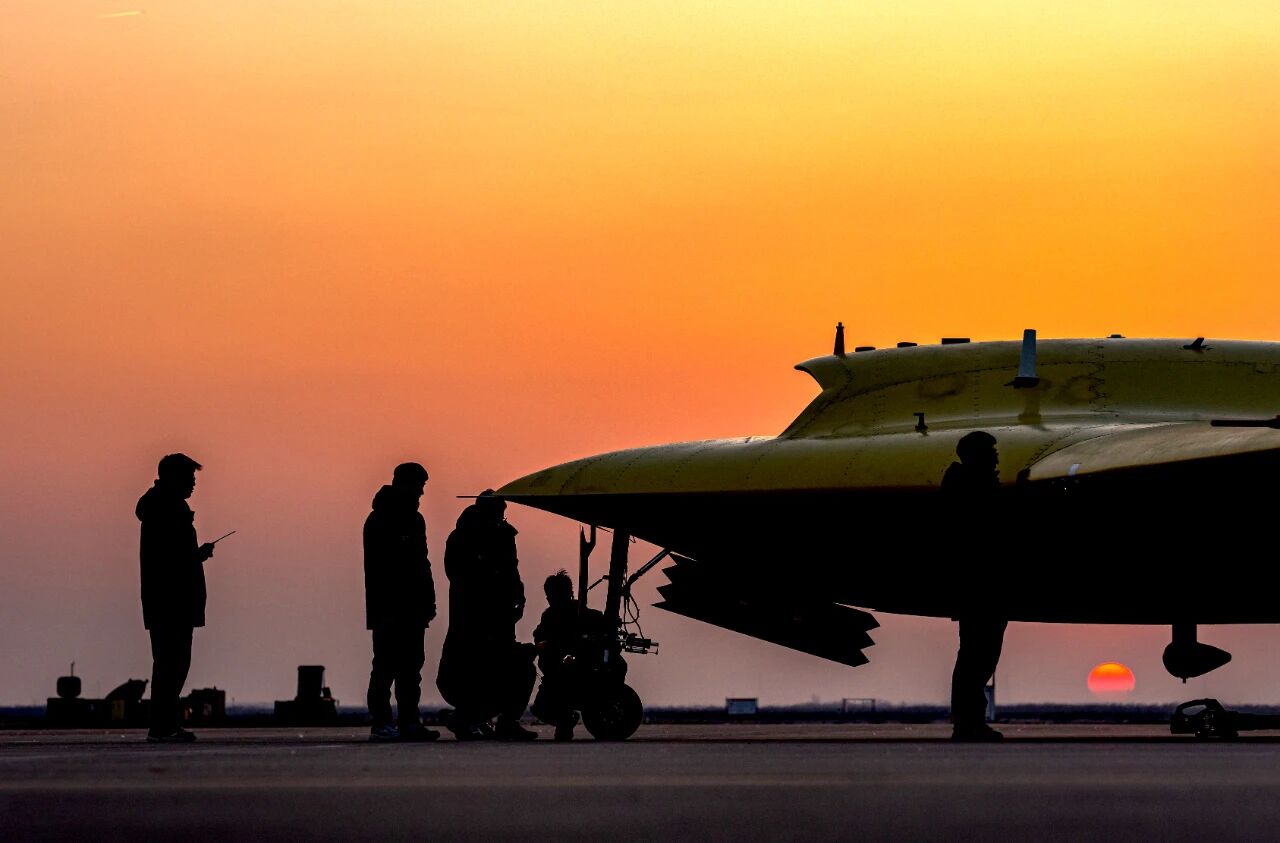 工作人员对彩虹-7高空高速隐身无人机进行测试。