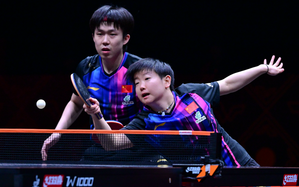 ▲12月12日,中国组合王楚钦/孙颖莎(右)正在比赛。图/新华社