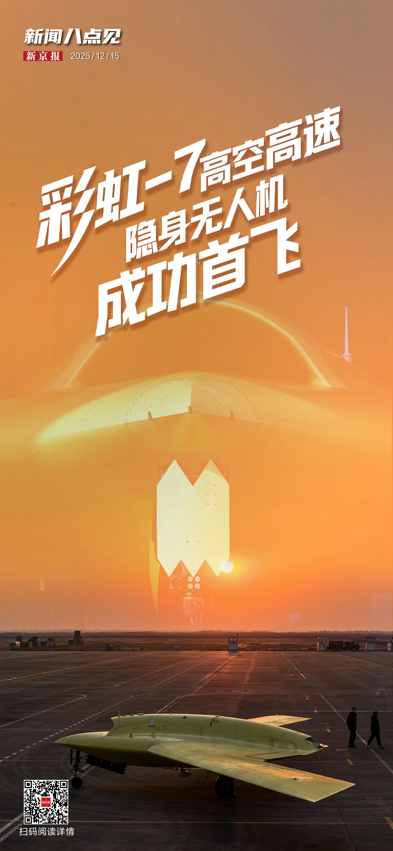 西北某机场,晨光未露。凌晨四点寒意袭人,只有远处机场跑道旁的指示灯在深蓝色的天幕下闪烁着微弱而坚定的光。一群身着绿色工作服的身影已悄然进场,开始了紧张而有序的准备工作。他们是中国航天科技集团有限公司所属航天彩虹无人机股份有限公司的科研与保障团队,今天,他们耗时多年潜心研制的重量级装备——彩虹-7高空高速隐身无人机,将在这里迎来它的首次飞行考验。