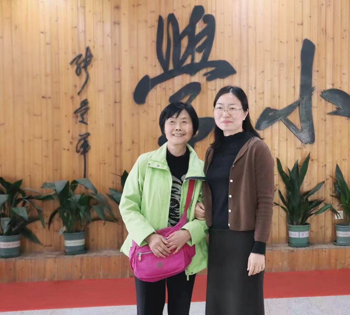 丁芃(左)和孙飞娜2021年在蔚斗小学合影。