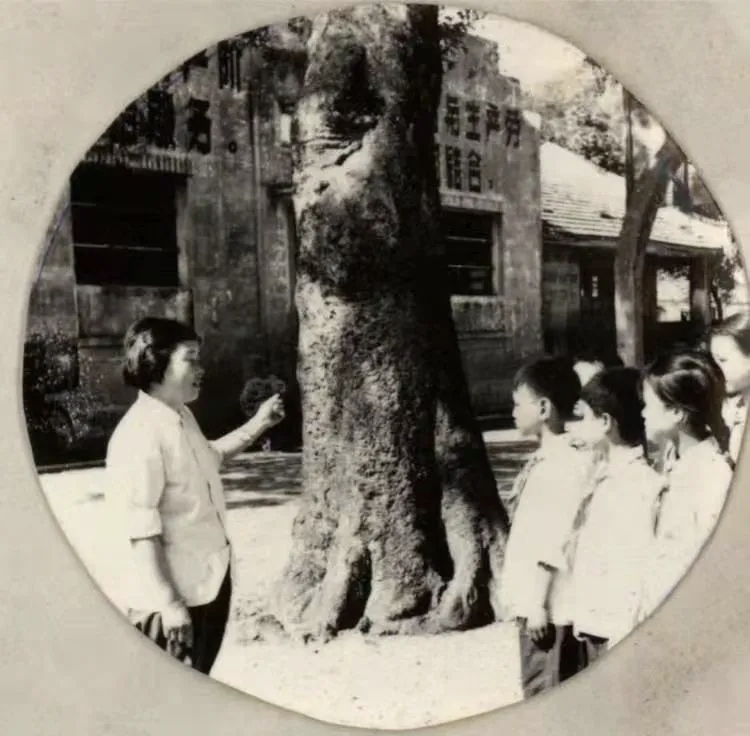 20世纪80年代初,青峙小学(七星延陵学校曾用名)校长吴月燕在沙朴树下给学生讲林勃的故事。